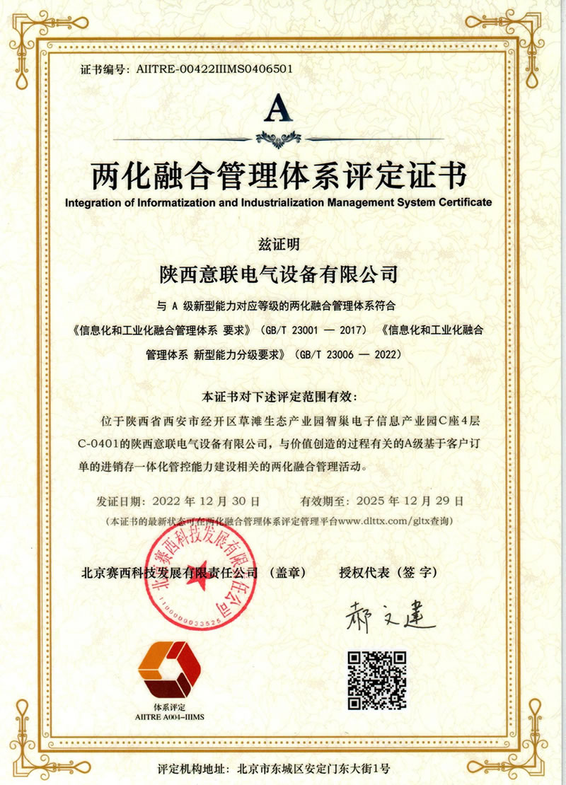近日,陜西意聯(lián)電氣有限公司收到兩化融合管理體系評定證書,正式通過國家兩化融合管理體系貫標(biāo)認(rèn)證。此前,公司積極響應(yīng)政府推進(jìn)信息化與工業(yè)化融合的倡導(dǎo),開展與價值創(chuàng)造的過程有關(guān)的A級基于客戶訂單的進(jìn)銷存一體化管控能力的打造,建設(shè)兩化融合管理體系,助推公司數(shù)字化轉(zhuǎn)型發(fā)展。